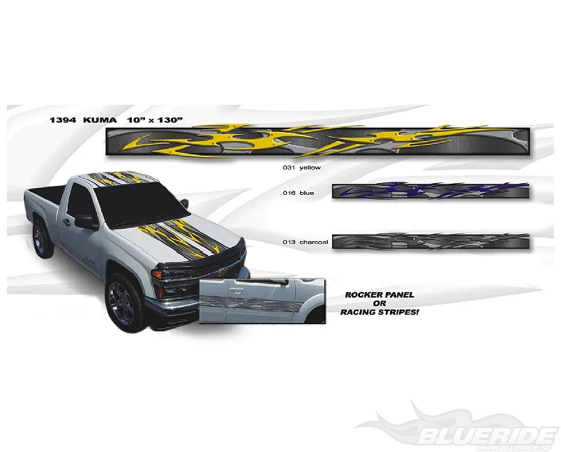 Två st bildekorer ingår, en för varje sida av bilen. Passar bra som både rocker panel och racing stripes.