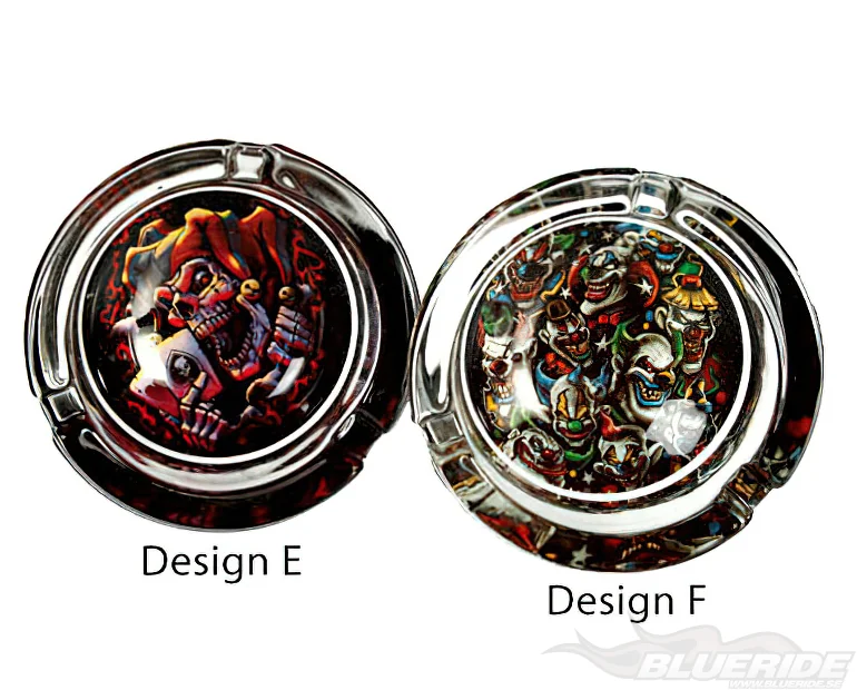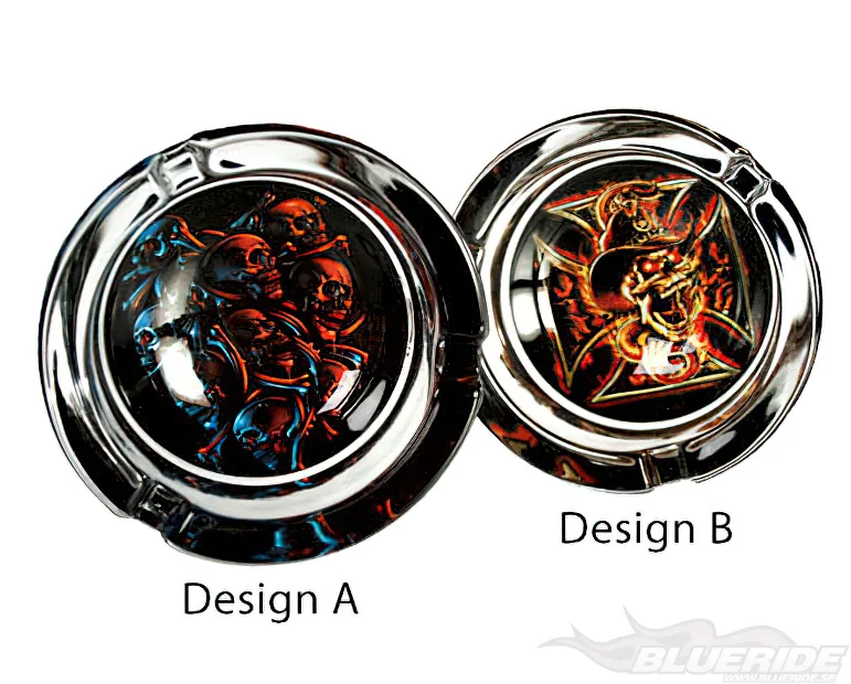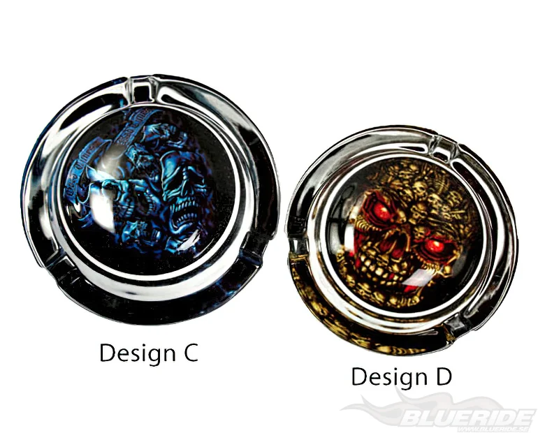 Askkopp i glas med döskalle-motiv. Motivet sitter inuti glaset, så det är skyddat och ger askkoppen ett snyggt utseende och djup.
