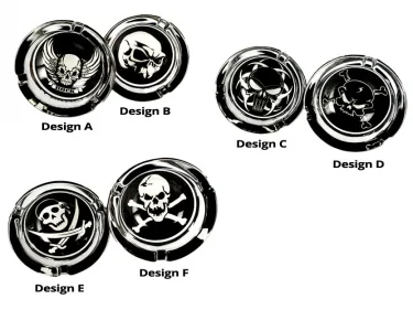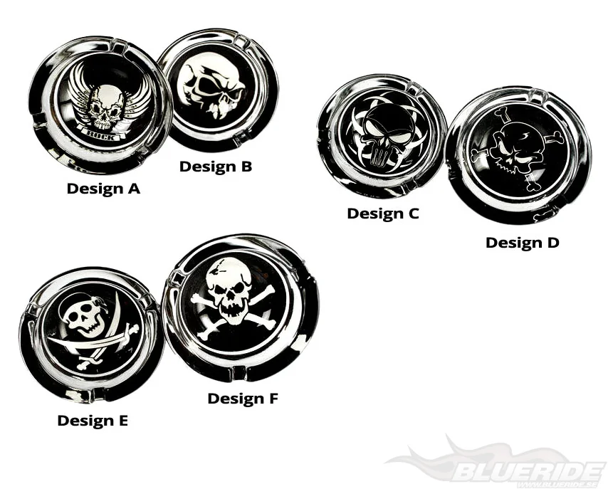 Askkopp i glas med döskalle-motiv. Motivet sitter inuti glaset, så det är skyddat och ger askkoppen ett snyggt utseende och djup.