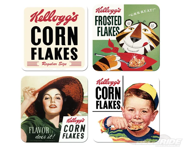 4 st glasunderlägg med klassiska tryck med Kellogg's Corn Flakes.