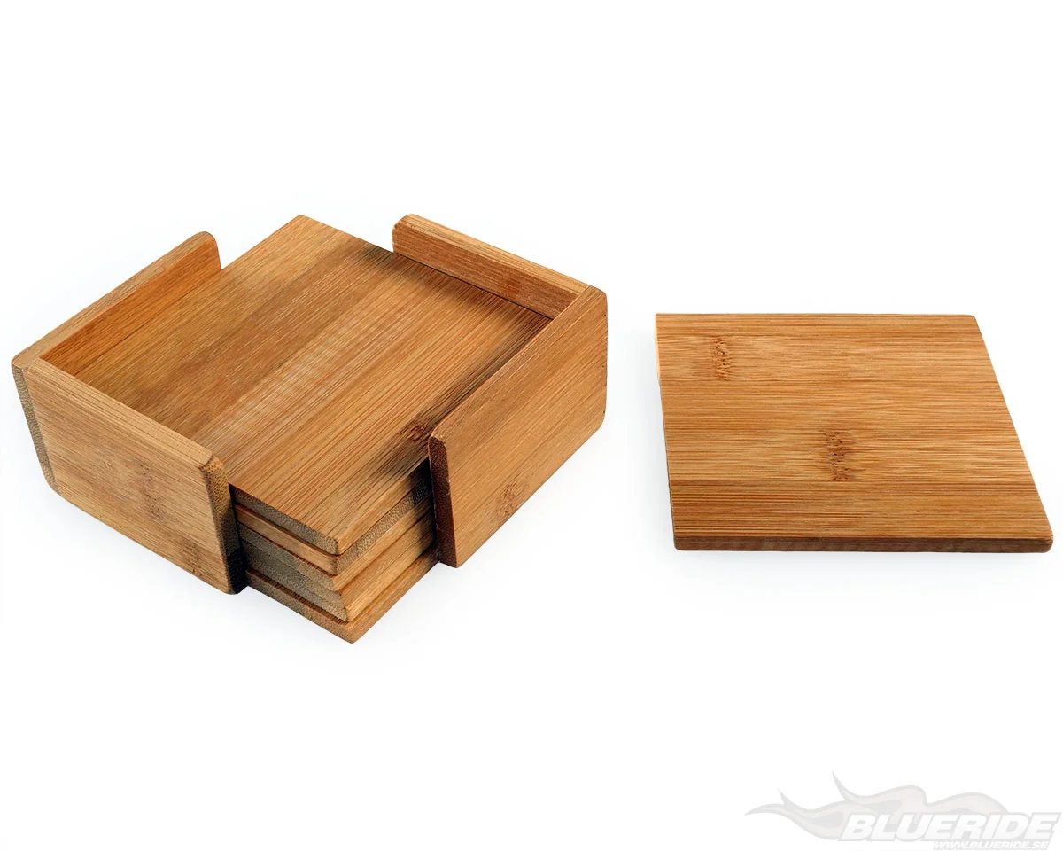 Glasunderläggen och hållaren är tillverkad i bambu.