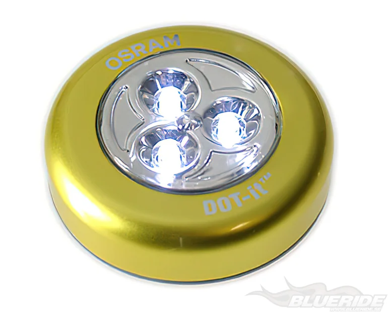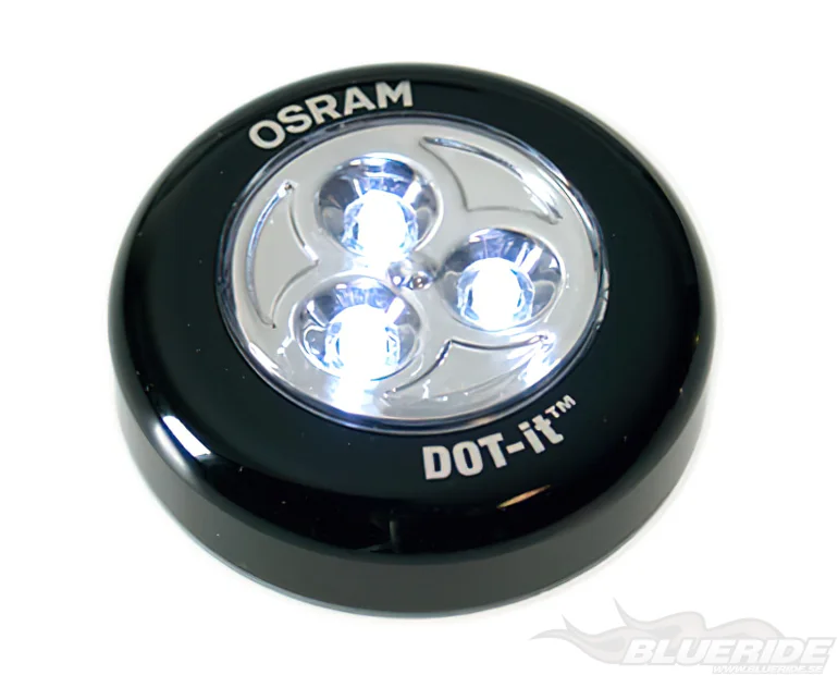 Lampan är har tre vita led-dioder och är batteridriven. På baksidan sitter det dubbelhäftande 3M tejp så du kan snabbt och enkelt fästa den i stort sett vart som helst.