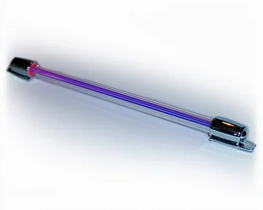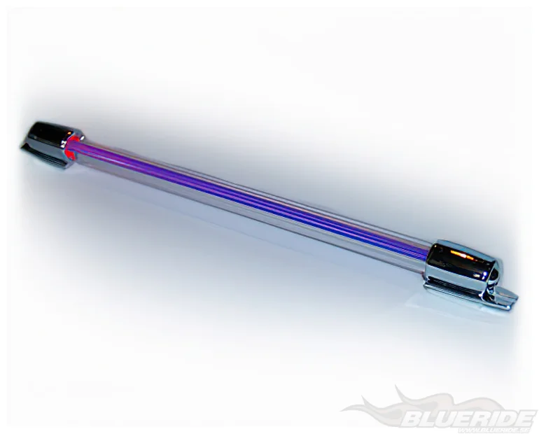 I ena änden av röret sitter en led-diod som gör att det färgade röret lyser lila.