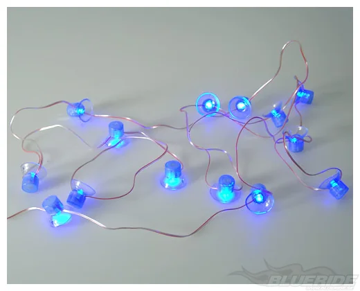 En slinga med led-lampor där varje lampa har en sugpropp. Slingan har totalt 14 sugproppar med dioder.