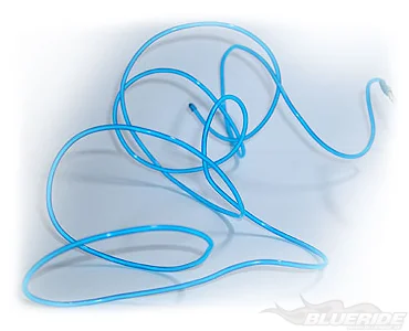 Snöre som lyser med blått sken. Snöret är lika mjuk som en vanlig elkabel och går att böja och vika nästan hur som helst. Strömbrytare finns på cigarettpluggen.