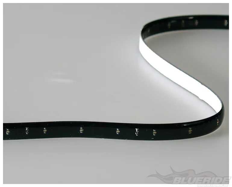 Den är endast 2 mm tjock och är böjbar. Den fästs med den dubbelhäftande 3M-tejpen som medföljer och redan sitter på LED Stripe:en.