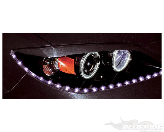 Ett enkelt och prisvärt sätt att snabbt skapa ett snyggt effekt-ljus. Dessa LED slingor placeras på eller under framlyktorna med en självhäftande 3M tejp som medföljer.