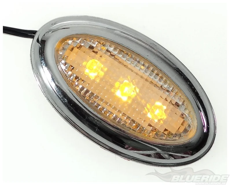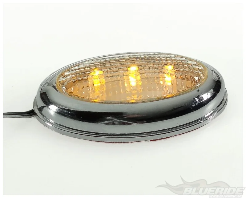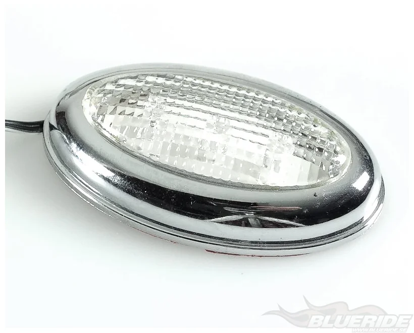 Lamporna har transparent glas och kromad ram. De kopplas till bilens strömkälla och fästs med dubbelhäftande tejp som medföljer.