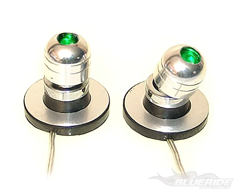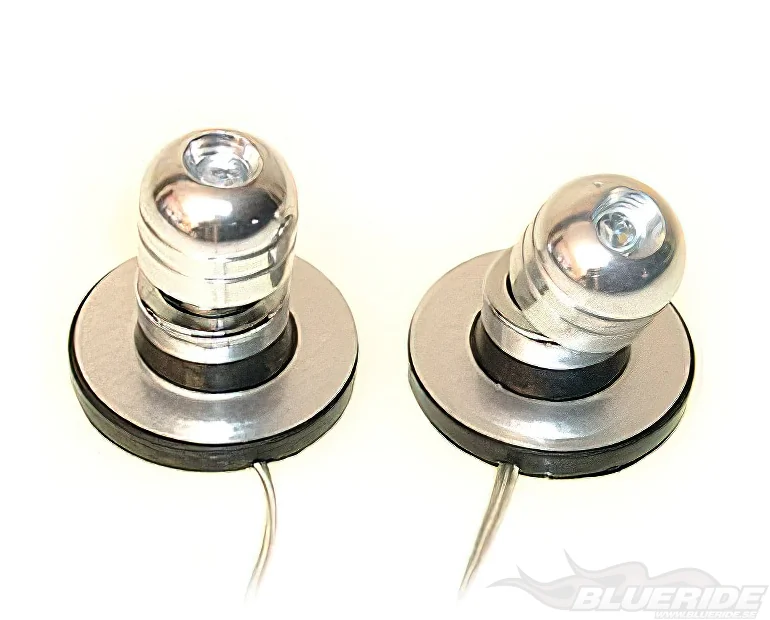 Lamporna är av metall och fästplattan av gummi. Kopplas till bilens strömkälla. Fästs med dubbelhäftande tejp som medföljer.
