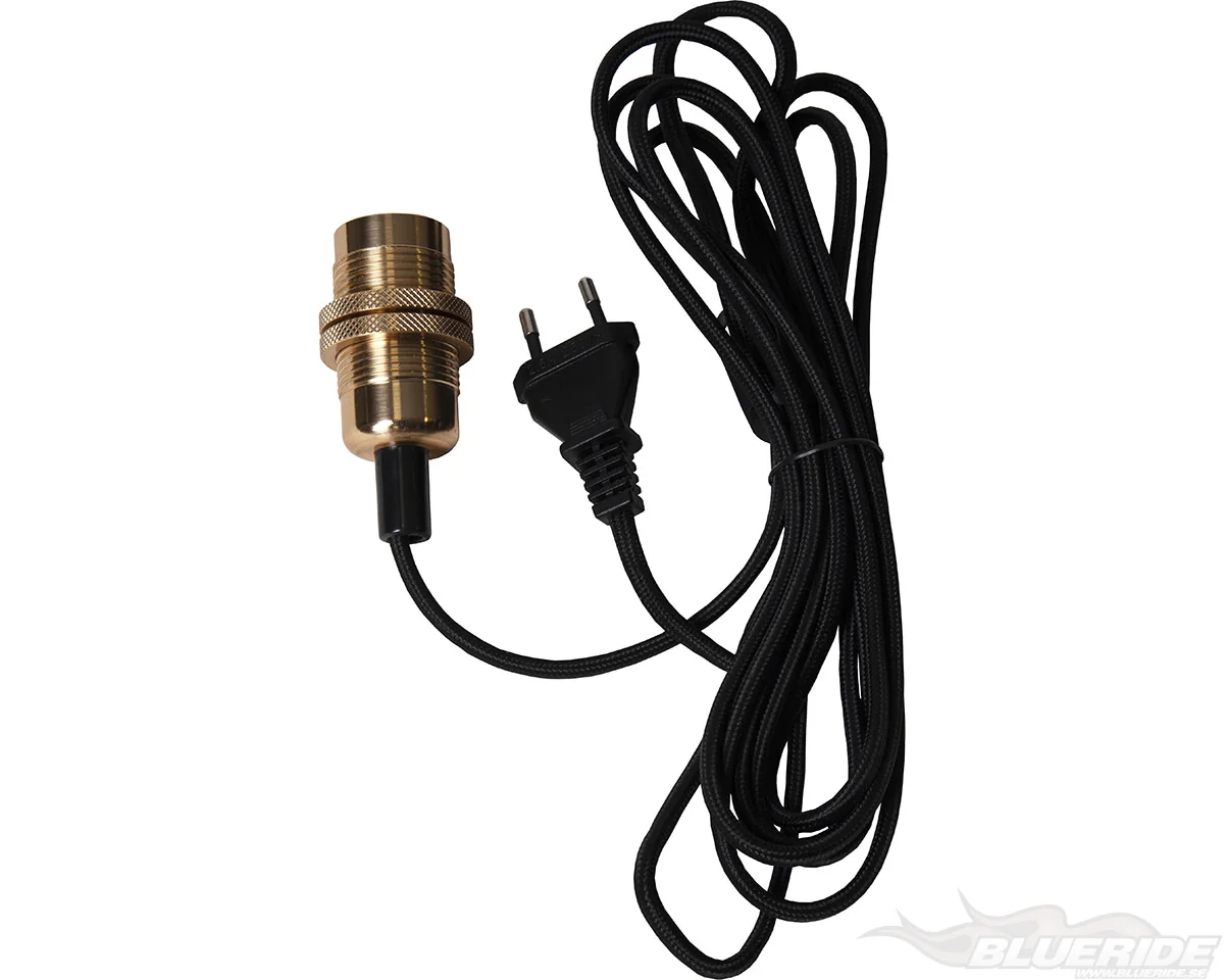 Sockeln har en snygg industrikänsla och strömkabeln är klädd med textil.