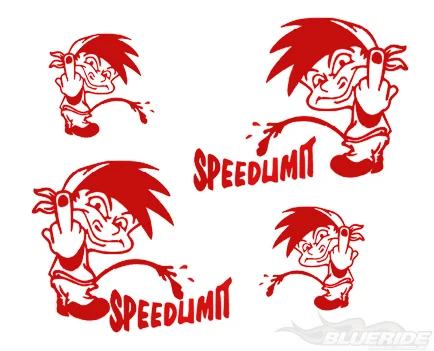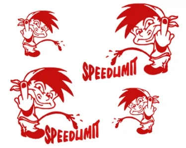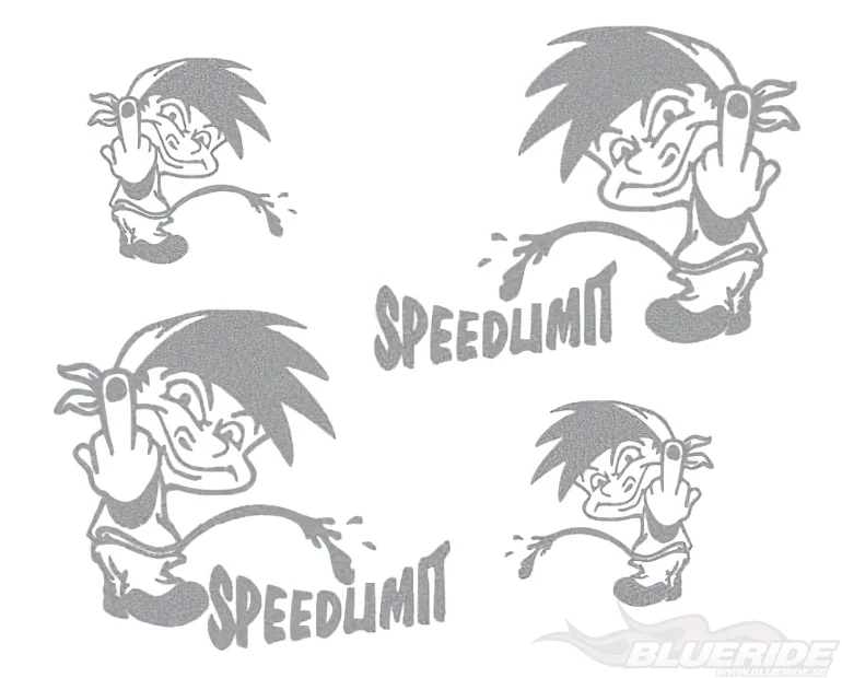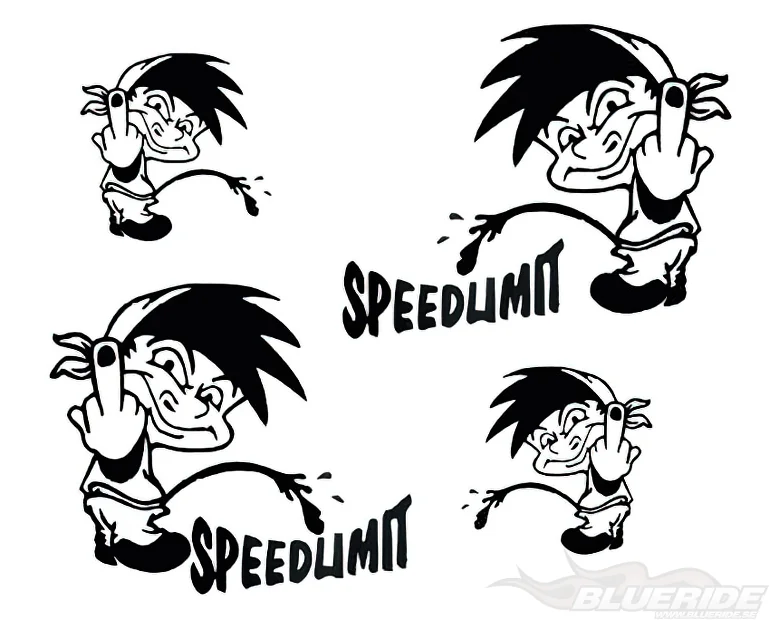 4 st dekaler med motiv av en snubbe som pekar finger och står och pissar, samt två dekaler med texten ″Speedlimit″.