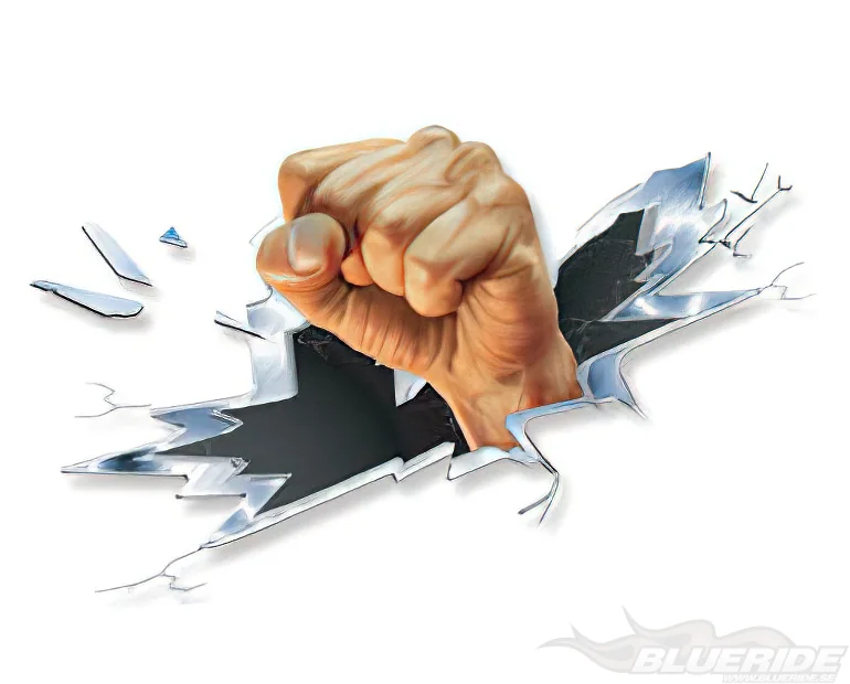 Snygg dekal med motiv av en knytnäve i fullfärg. Dekalen ger en illusion av att knytnäve kommer ut ur föremålet som man fäster dekalen på.