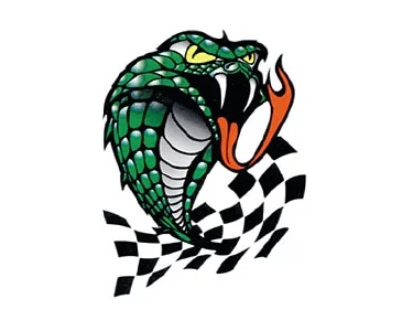 Dekal i flera färger med ett motiv av en kobra och en checker/pepita-flagga
