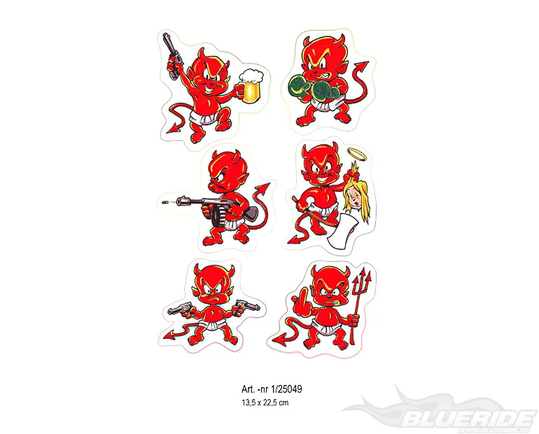En dekalkarta med 6 st dekaler på djävular i olika motiv.