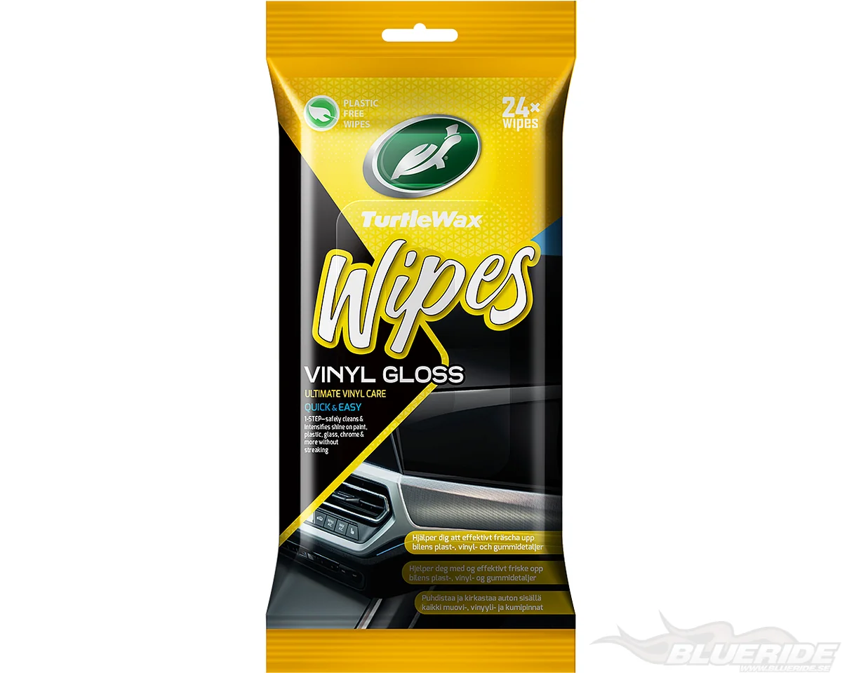 Turtle Wax Vinyl Gloss Wipes återställer snabbt och enkelt plast och vinyl till dess ursprungliga lyster.