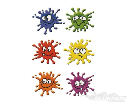 Roliga stickers i olika färger.