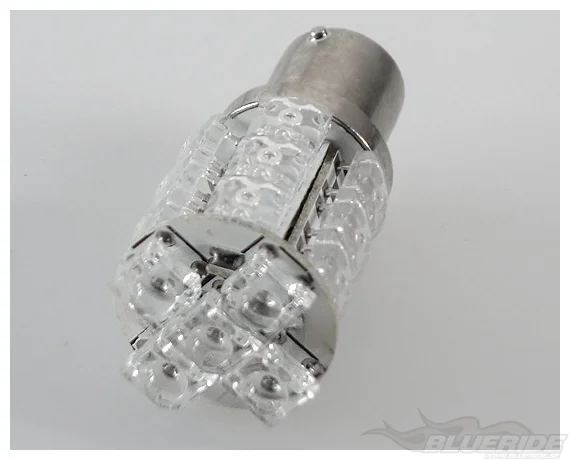Glödlampan har sockelutförande BA15s och lyser med vitt ljus.