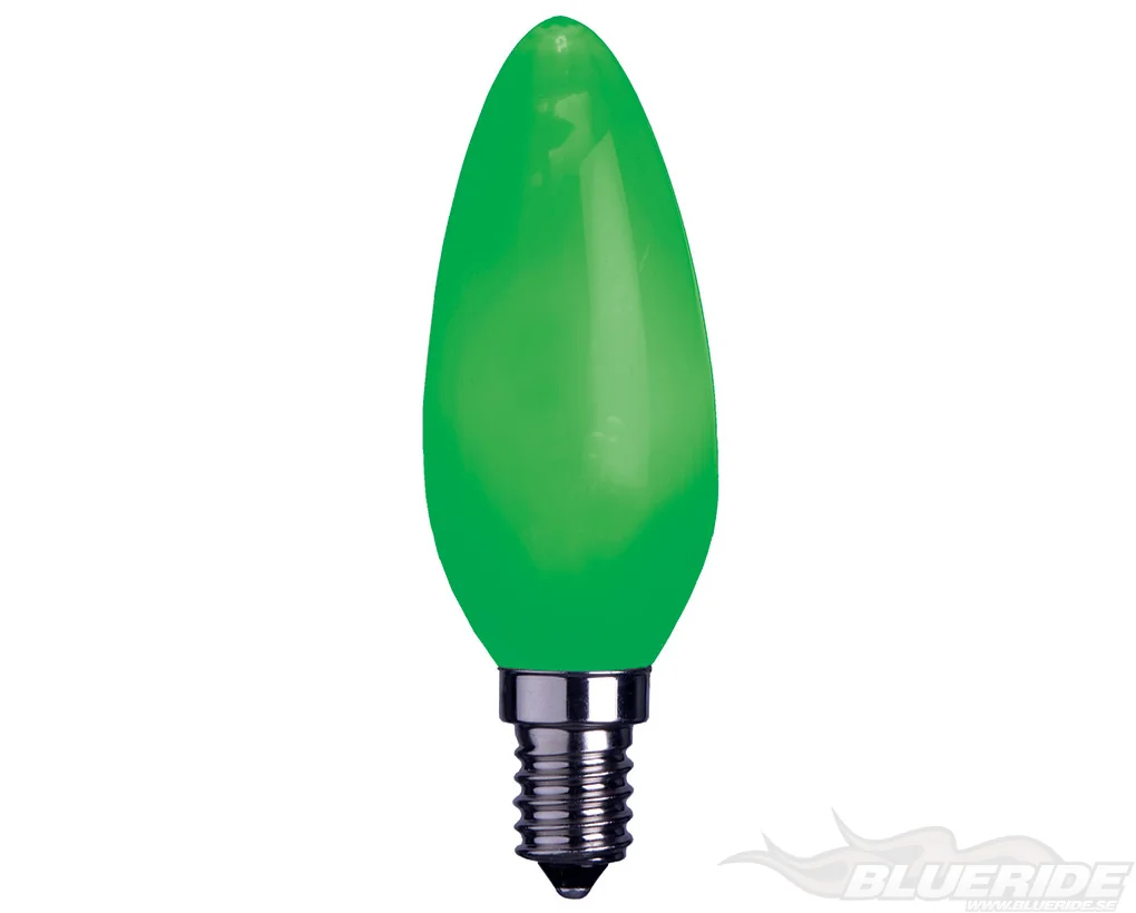 LED-lampa med grönt ljus som ersätter vanlig E14 glödlampa.