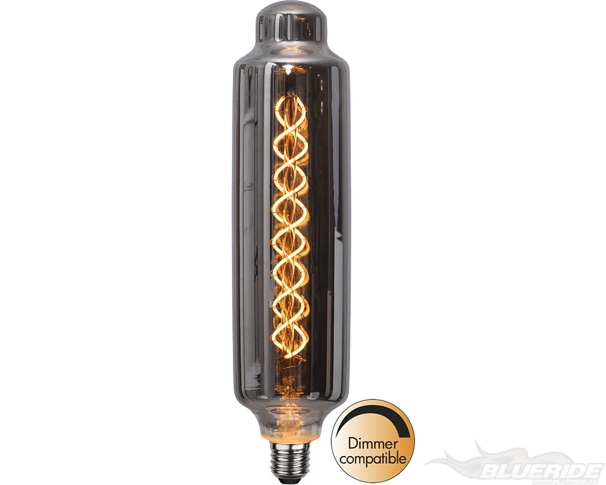 En riktigt snygg och cool LED-lampa i industri-design. LED-lampan är en rejäl pjäs, den är hela 31 cm hög och har en diameter på 7,8 cm. Den har rökigt glas med varmvitt sken. Lampan är dimmerkompatibel och har E27-sockel. Färgtemperaturen är...