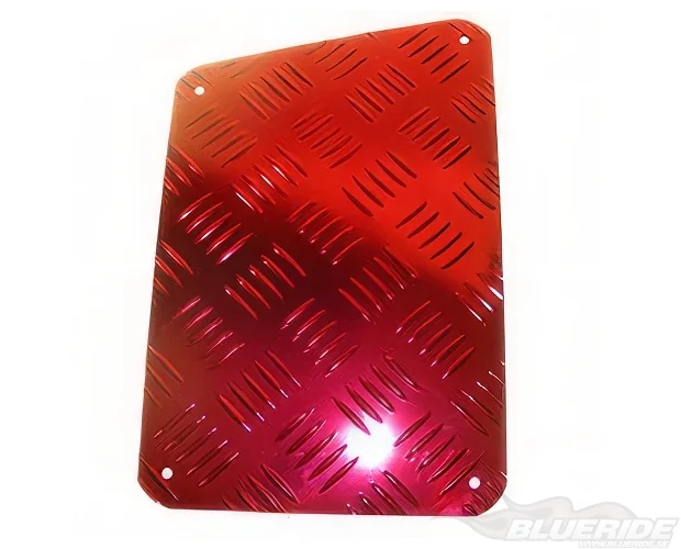 1 st aluminiumplatta i blank röd färg som skruvas fast på den befintliga golvmattan för ett snyggt sportigt utseende.