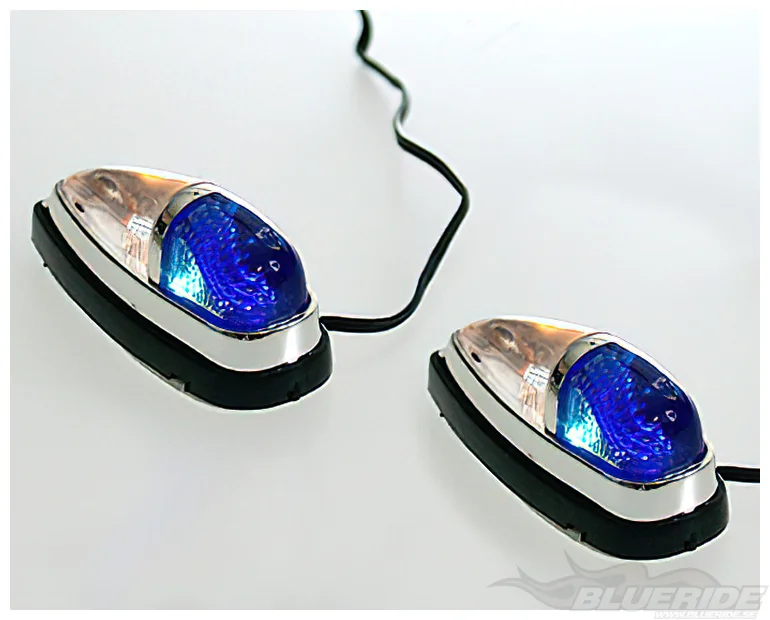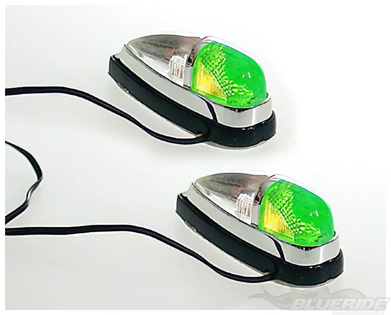 2 st interiörlampor med transparent plast på ena sidan och färgad plast på andra. Inuti sitter en lampa, så ena sidan lyser med en färg, och andra sidan av lampan lyser vitt.