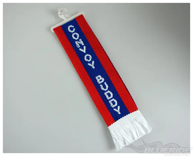Scarfen sitter på en plasthängare, så den kan hängas fritt. Det medföljer även en sugpropp så den kan fästas i rutan...