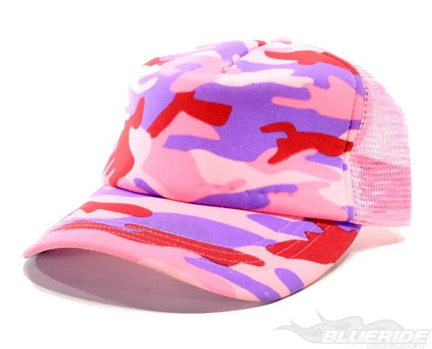 Keps i rosa camouflage på framsidan och rosa mesh på baksidan