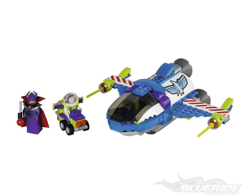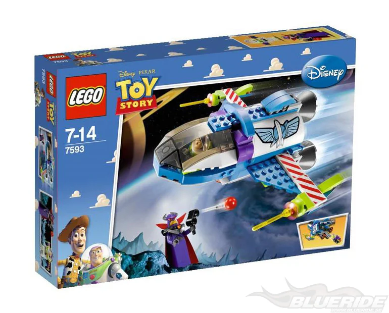 Toy Story Rymdskeppet Star Command 7593. Närhelst en fara hotar galaxen, är Buzz Lightyear där i sin snabbare-än-ljuset Star Command rymdskepp! Kriga i yttre rymden, eller på marken och använd den hemliga månbilen för special-uppdrag! Inkluderar Buzz Lightyear och den onde kejsaren Zurg