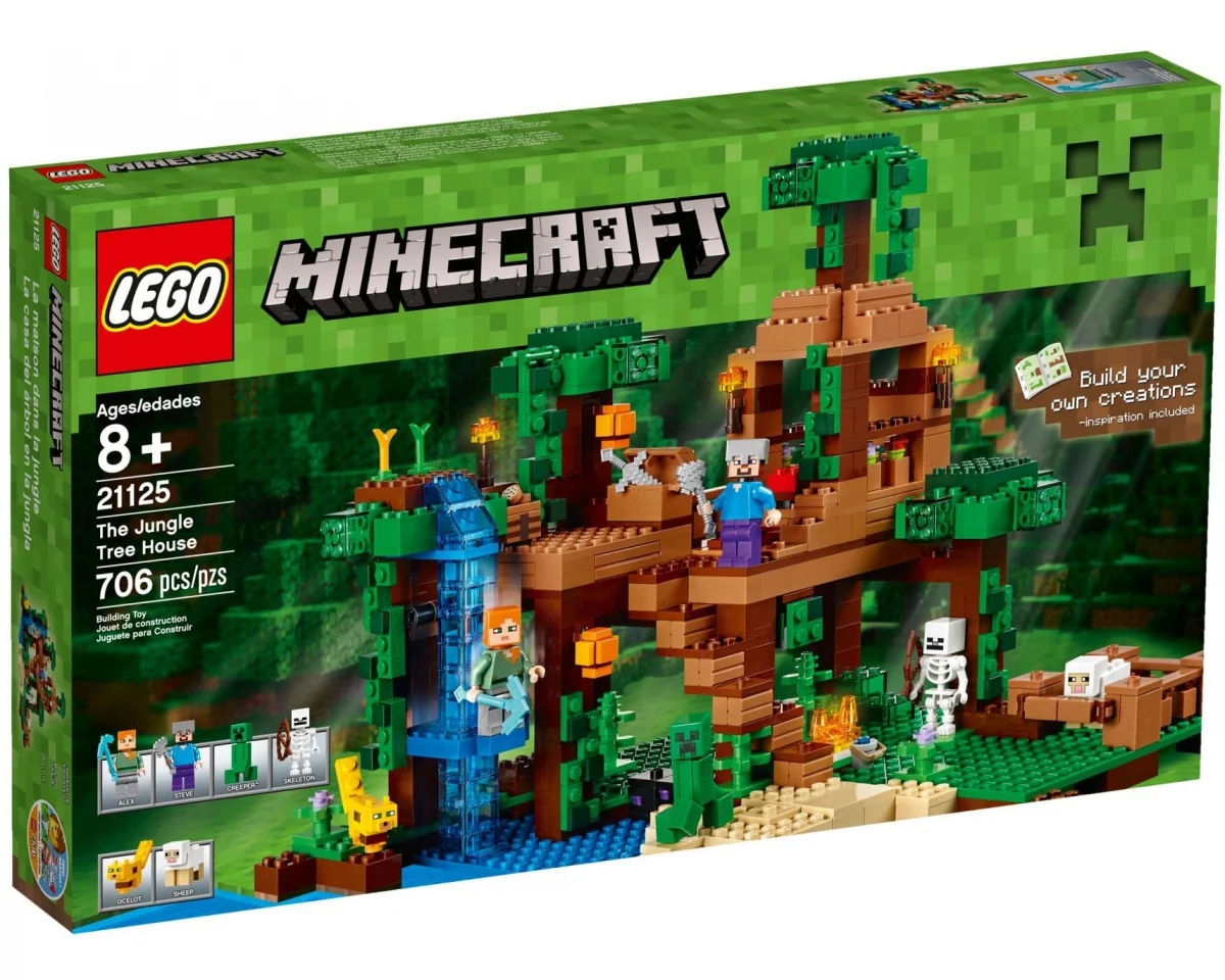 Lego Minecraft 21125, The Jungle Tree House innehåller 706 st bitar och tillverkades 2016.