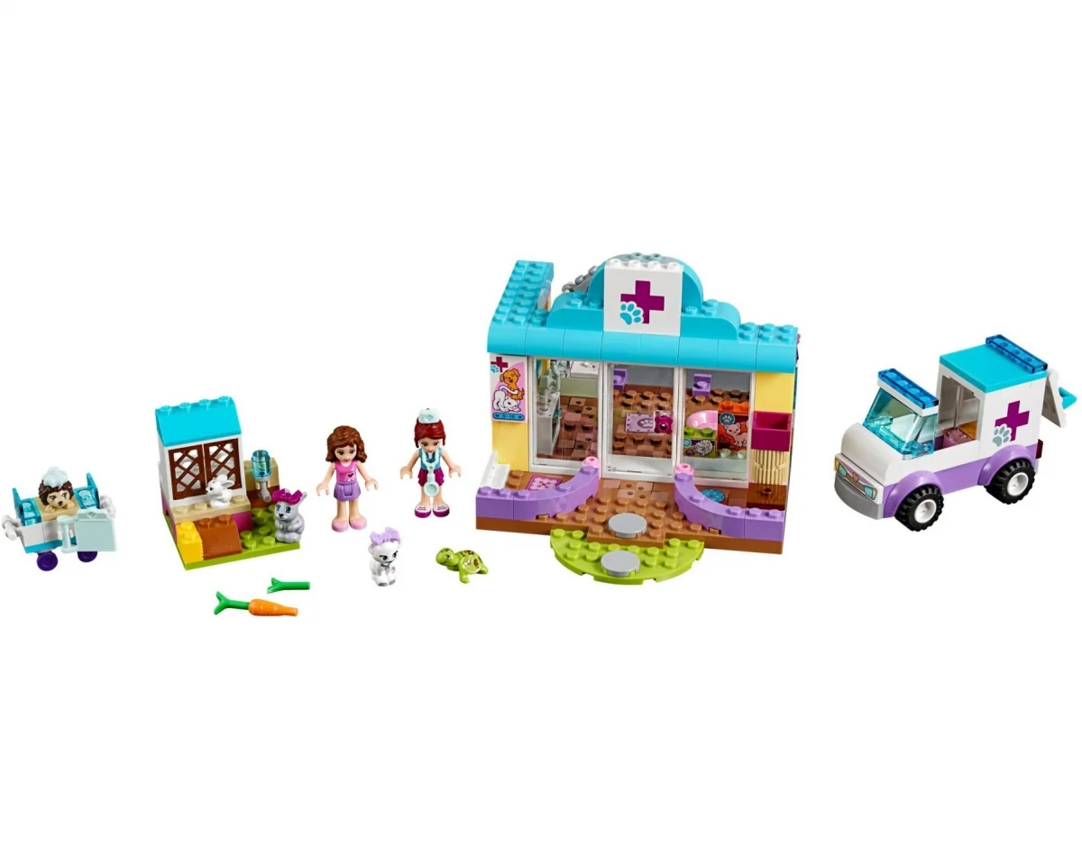 Join Olivia and Mia as they work to help injured and sick animals get better in the LEGO® Juniors Vet Clinic! Open the clinic with Mia and get ready for the day′s patients...