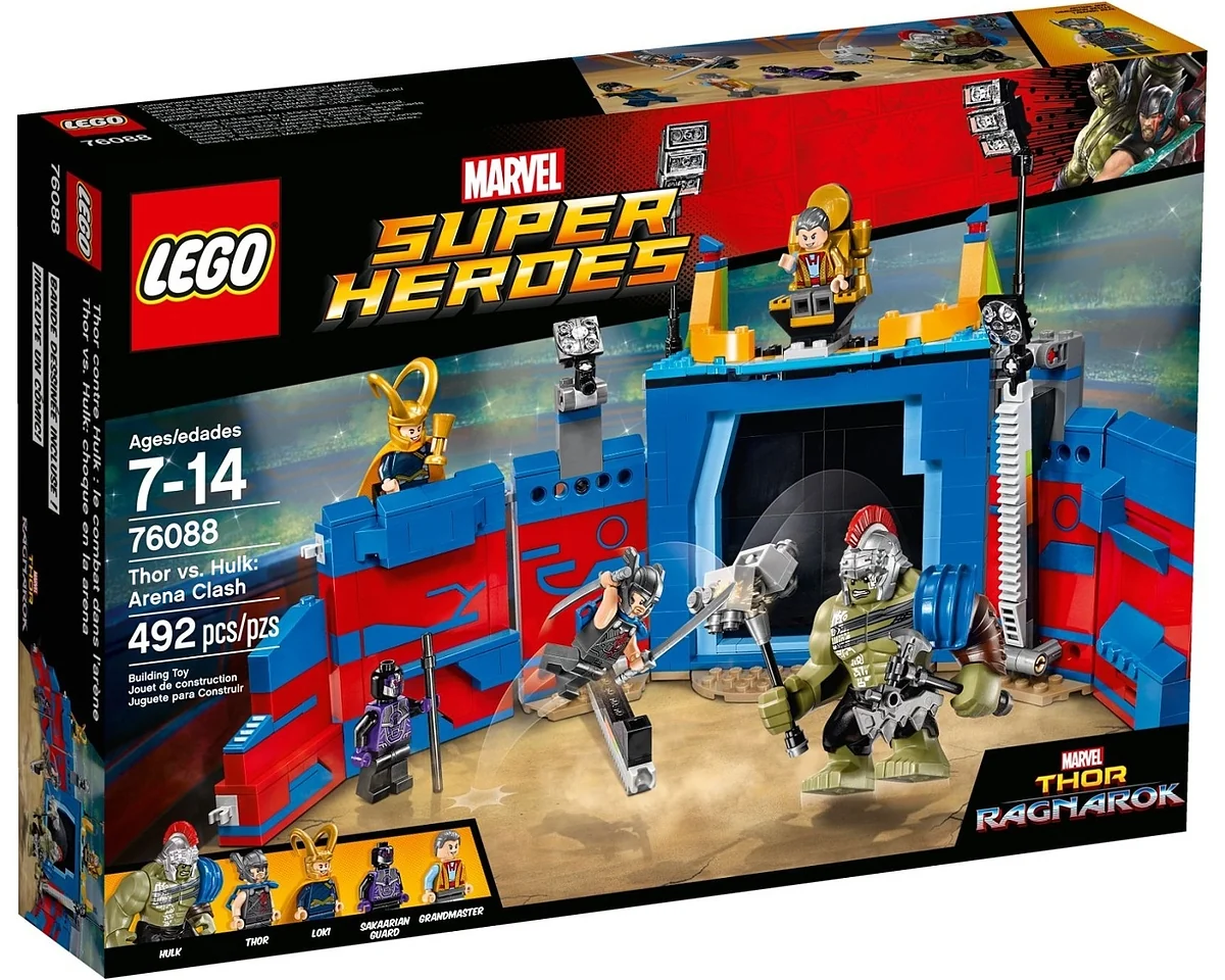 Lego Marvel Super Heroes 76088, Thor vs. Hulk: Arena Clash. Legot innehåller 492 st bitar och tillverkades 2017.