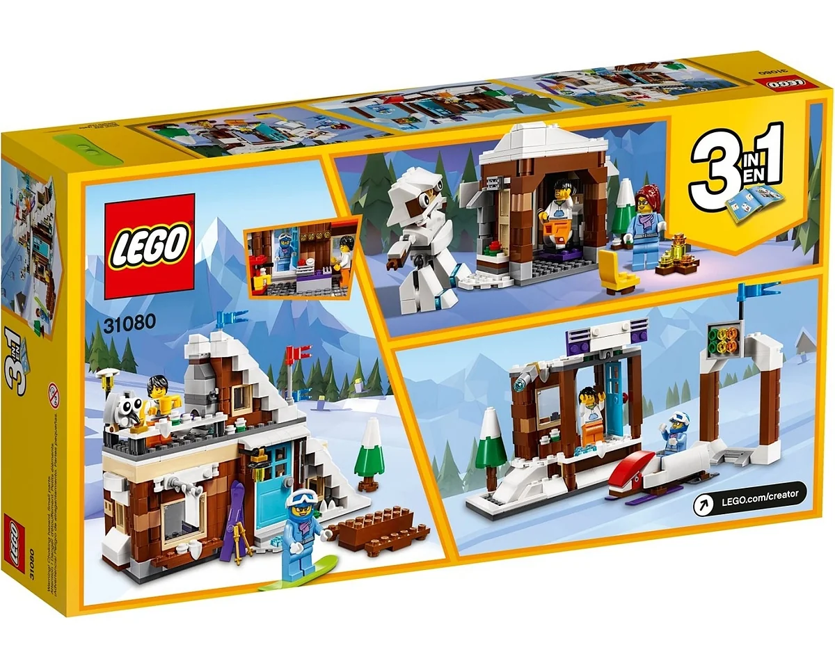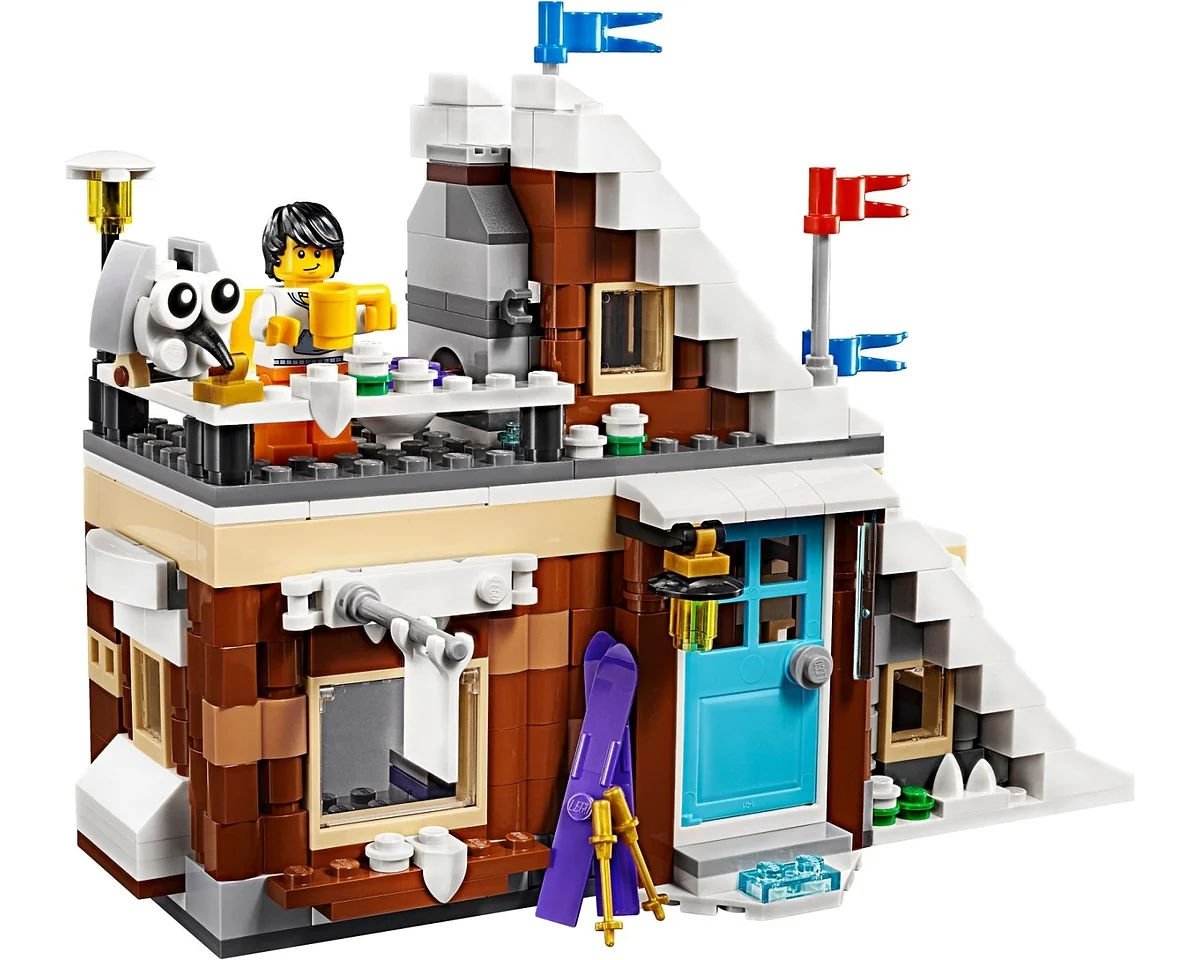 - Blanda och kombinera de byggbara modulerna för att bygga en dubbel skidbacke, och byt enkelt ut fönstret, dörren och andra modulsektioner för att anpassa skidstugan med modulsystemet från LEGO® Creator.