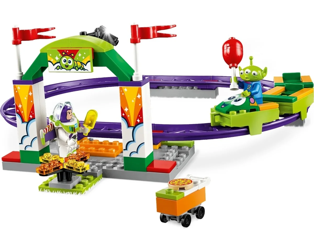 Lego Disney 10771, Spännande bergochdalbana. Legot innehåller 98 st bitar och tillverkades 2019. Antal minifigurer i legoförpackningen är 2 st. Spännande bergochdalbana ingår i serien Disney, Spännande bergochdalbana och tillhör underserien Toy Story 4. Dela spänningen och glädjen på tivoli med ditt barn med Disney - Pixars Toy Story 4...