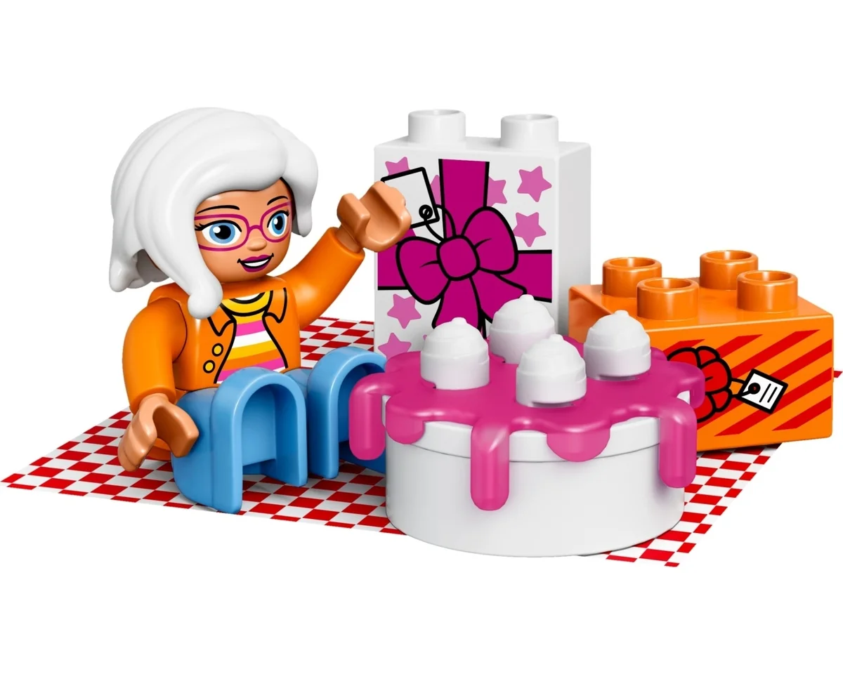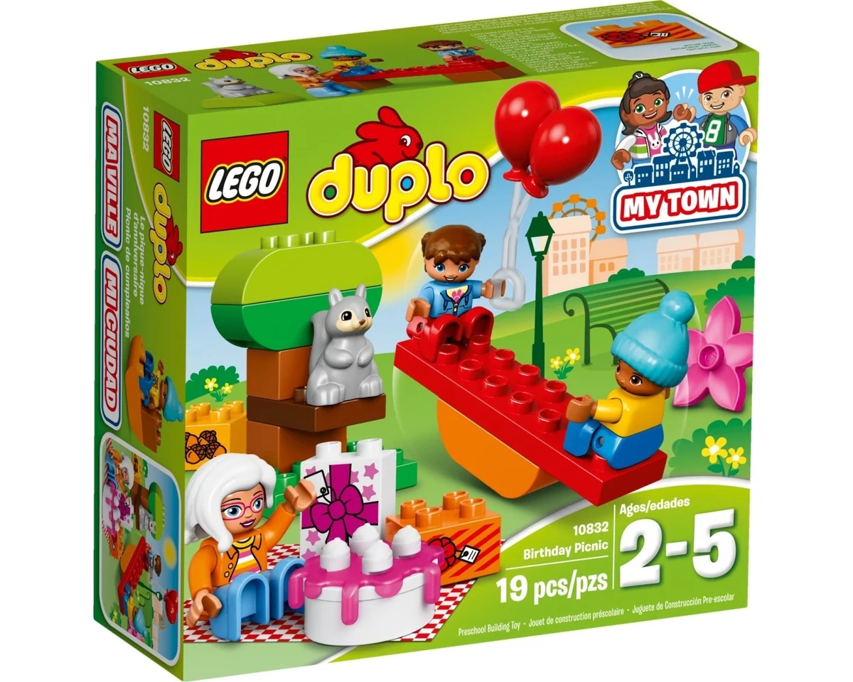 Lego DUPLO Town Födelsedagspicknick 10832 innehåller 19 st bitar och tillverkades 2017. Antal minifigurer i legoförpackningen är 3 st. Födelsedagspicknick ingår i serien DUPLO Town. Födelsedagspicknick – Iscensätt verkliga händelser med LEGO® DUPLO® Min stad: en värld...