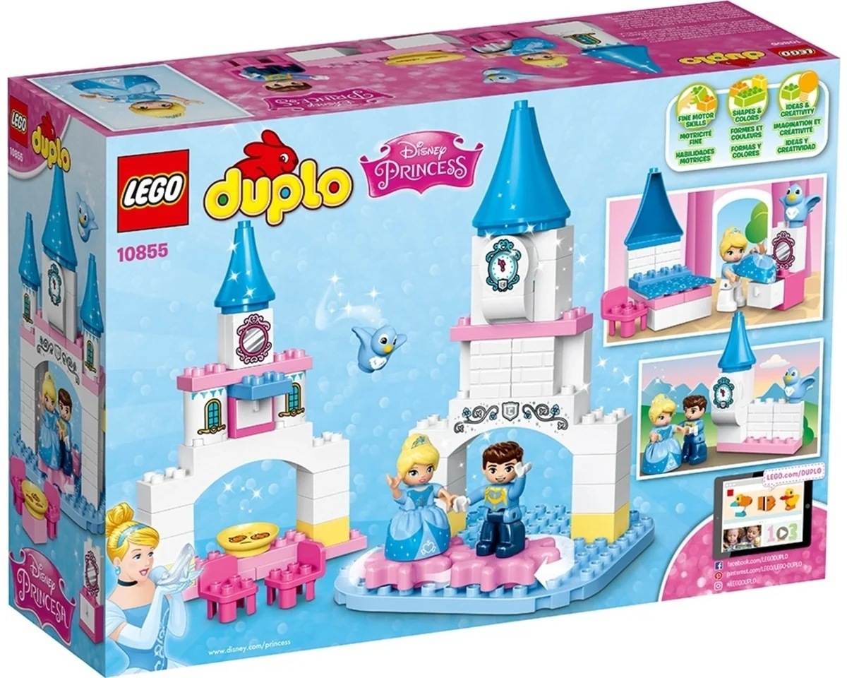 Lego DUPLO Princess™ Askungens Magiska Slott 10855 innehåller 56 st bitar och tillverkades 2017. Antal minifigurer i legoförpackningen är 2 st. Askungens Magiska Slott ingår i serien DUPLO Princess™ och tillhör underserien Disney Princess. LEGO lanserade DUPLO...