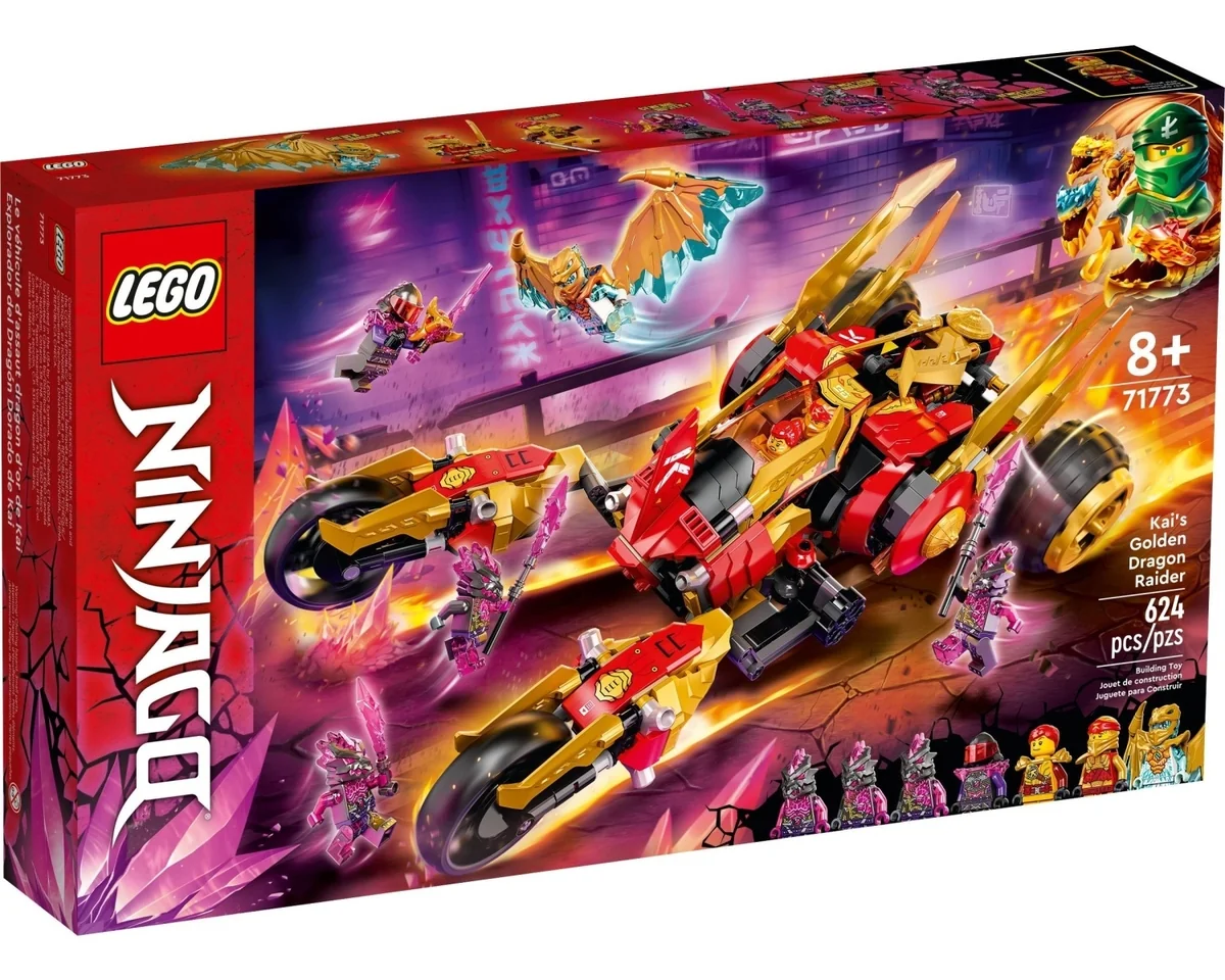 Lego Ninjago 71773 Kais Gyllene Drakfarkost innehåller 624 st bitar och tillverkades 2022.