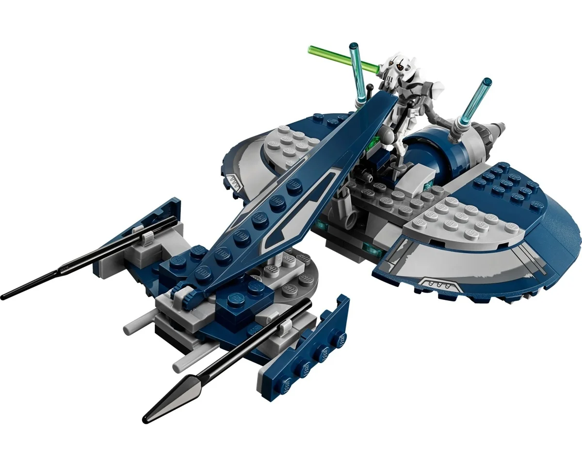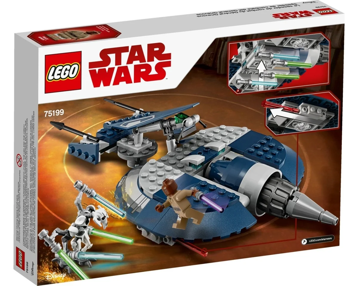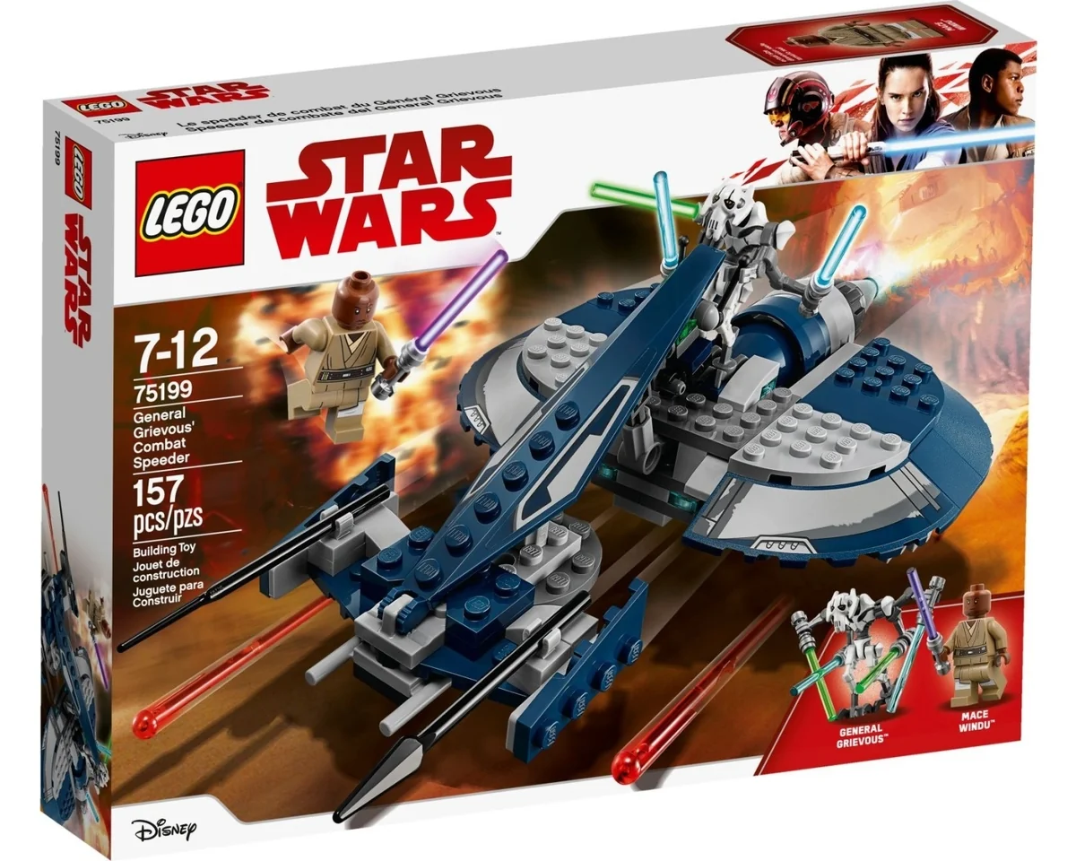 Delta i Star Wars: The Clone Wars action med General Grievous' Combat Speeder, med kanoner med fjädermekanism, ljussabelförvaring, minifiguren Mace Windu och figuren General Grievous. Lego Star Wars™ 75199 General Grievous' Combat Speeder innehåller 157 st bitar och tillverkades 2018. Antal minifigurer i legoförpackningen är 2 st. General Grievous' Combat Speeder ingår i serien Star Wars™ och tillhör underserien The Clone Wars. LEGO...