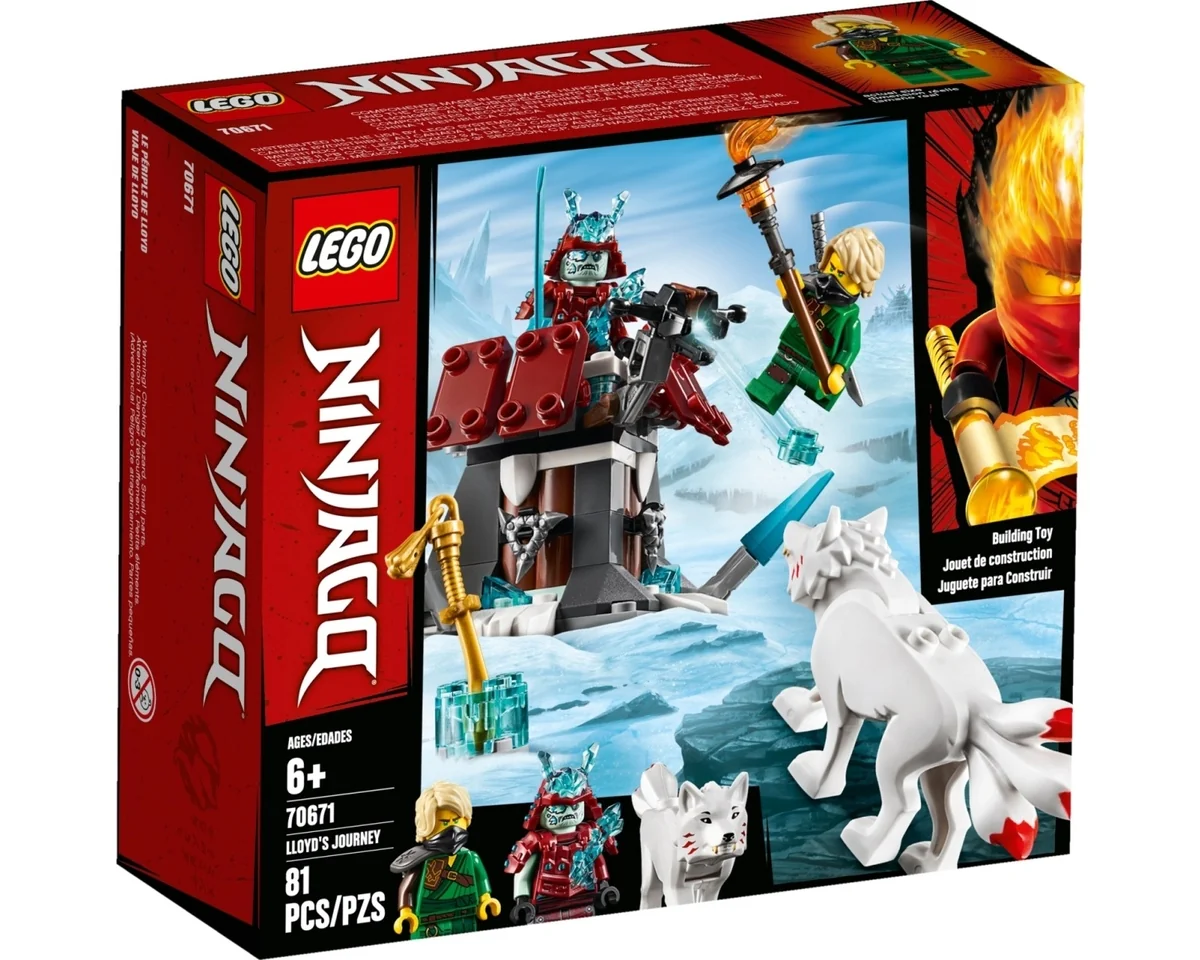 Lek rollekar om ninjahjälten Lloyd och hans varg som möter snöstormskrigaren och återskapa scener från NINJAGO® tv-serien. Lego Ninjago 70671 Lloyds Resa innehåller 81 st bitar och tillverkades 2019. Antal minifigurer i legoförpackningen är 2 st. Lloyds Resa ingår i serien Ninjago och tillhör underserien Secrets of the Forbidden Spinjitzu. LEGO lanserade Ninjago 70671 Lloyds Resa i juni 2019. Det slutade säljas av LEGO i december...