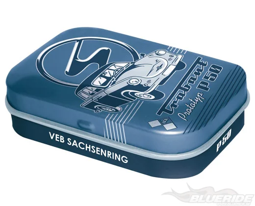 Plåtasken har ett snyggt motiv på en Trabant P50.