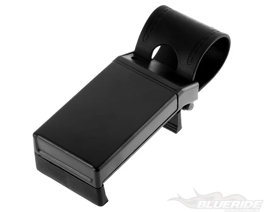 Mobilhållare som du fäster på ratten. Du behöver inga verktyg eller skruva fast något, istället drar du gummibandet runt ratten och fäster den i fästet.