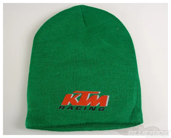 Grön mössa med KTM-loggan i orange, grå & svart vinyltryck.