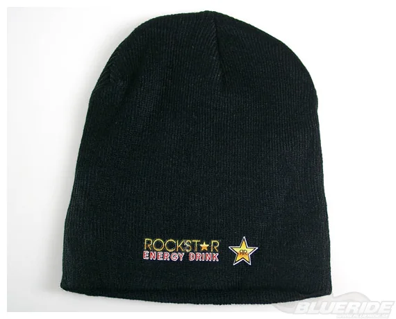 Svart mössa med Rockstar Energy Drink-logga i färgat vinyltryck.