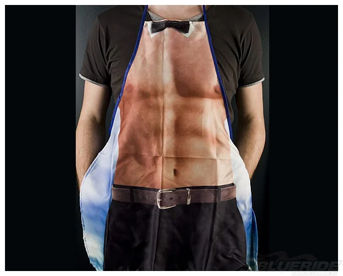 Förkläde med specialtryck så att du kan se ut som den mannen du alltid önskade du gjorde.