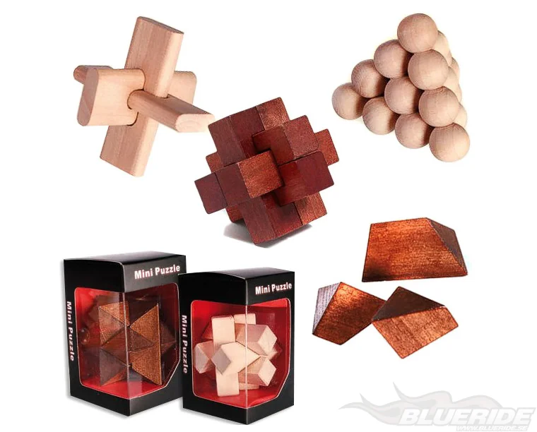 Ett litet smidigt 3d-pussel som är tillverkat i trä. Om du inte lyckas få ihop pusslet så medföljer det en illustration på en lös papperslapp i förpackningen som ger dig en hint om hur du skall få ihop det igen.