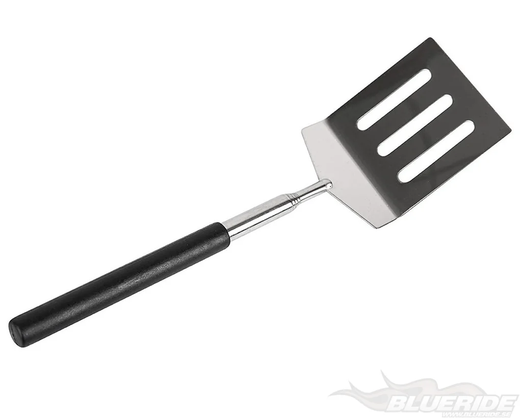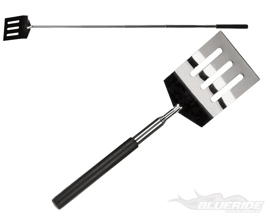 Utdragbar stekspade så du slipper får stänk, glöd eller rökos från grillen eller brasan.