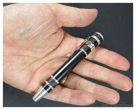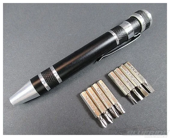 Liten och smidig skruvmejsel med 8 st bits. Skruvmejseln är i metall och är bara 11 cm lång, så du kan enkelt ha den i fickan.