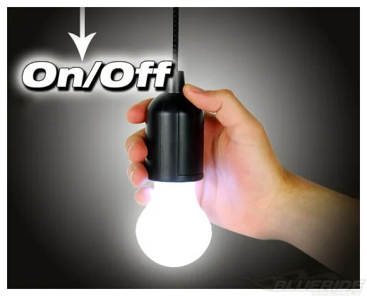 För att slå på eller av lampan så drar lampan ifrån repet, det sitter alltså ingen synlig strömbrytare på lampan.