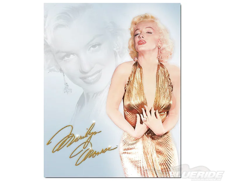 Retro plåtskylt i storleken 32 x 41 cm med texten ″Marilyn Monroe″ och en bild på Marilyn Monroe.