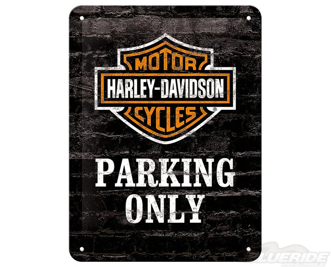 3D-stansad plåtskylt i äkta nostalgitripp med Harley Davidson-motiv i storleken 15 x 20 cm.