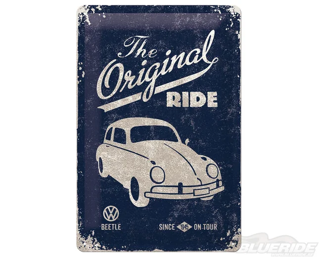 3D-stansad plåtskylt i äkta nostalgitripp med VW- och Bubbla-motiv i storleken 20 x 30 cm.